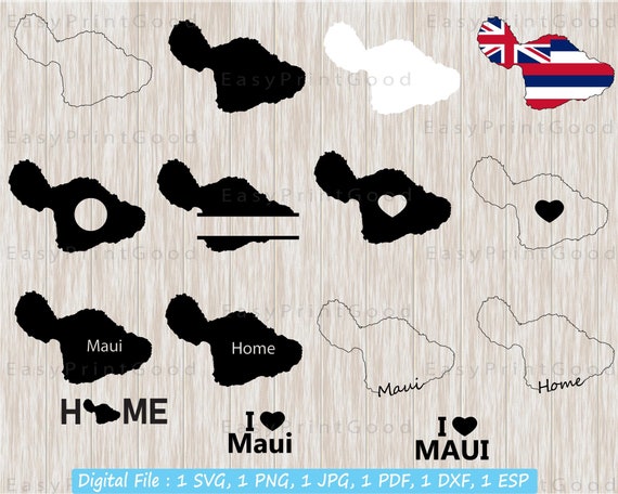 Maui Svg Bundle, Hawaii Map, Maui Island Clipart, Maui Map, Flag