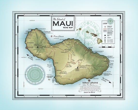 The Island of Maui atlas Inspired 11×14 Road Map Etsy