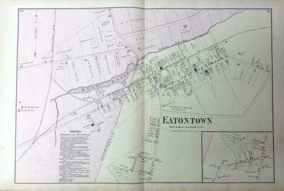 1873 Plan of Eatontown, NJ ocean & Shrewsbury Townshipslarge Rare