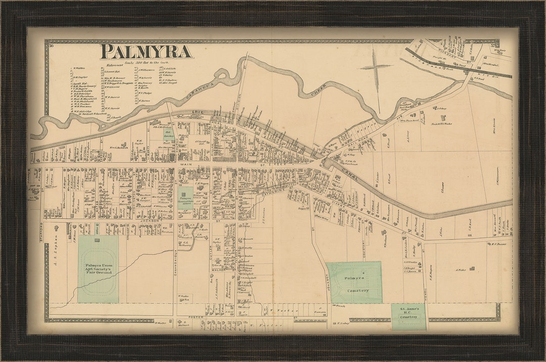 Village of PALMYRA, New York 1874 Map, Replica and GENUINE