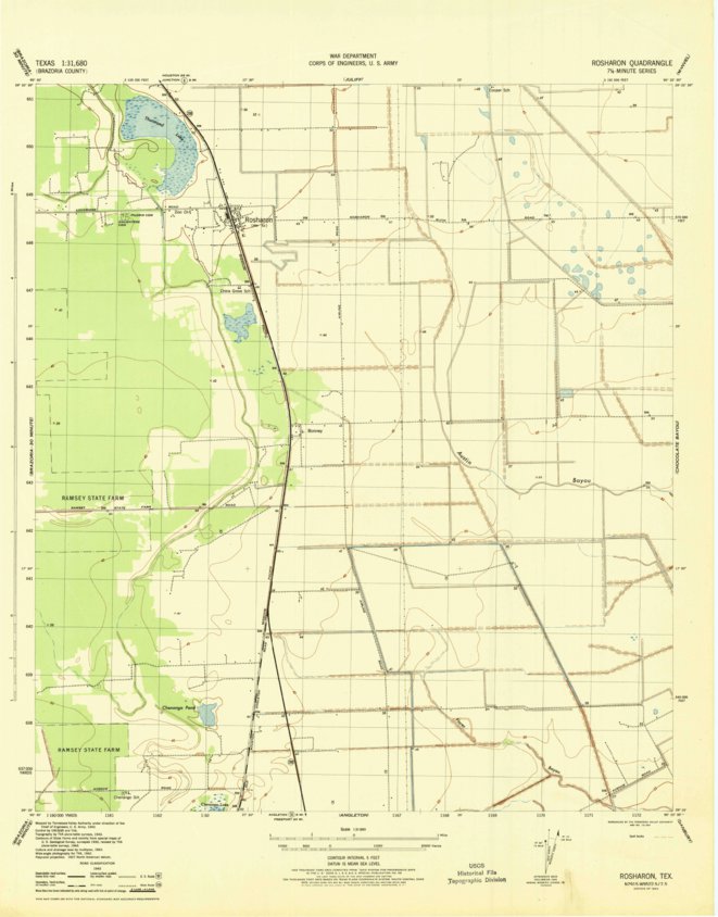 Rosharon, TX (1943, 31680 Scale) Map by United States Geological