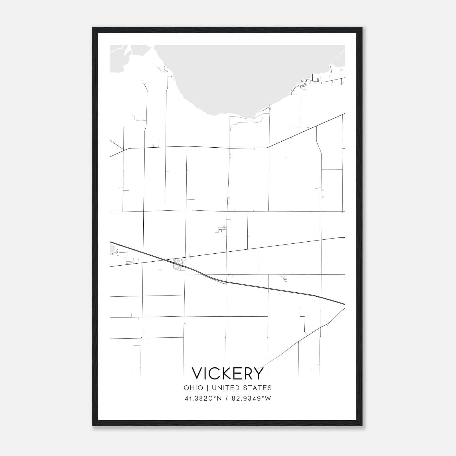 Vickery Ohio Map Gift Poster, Modern Home Decor Wall Art Print