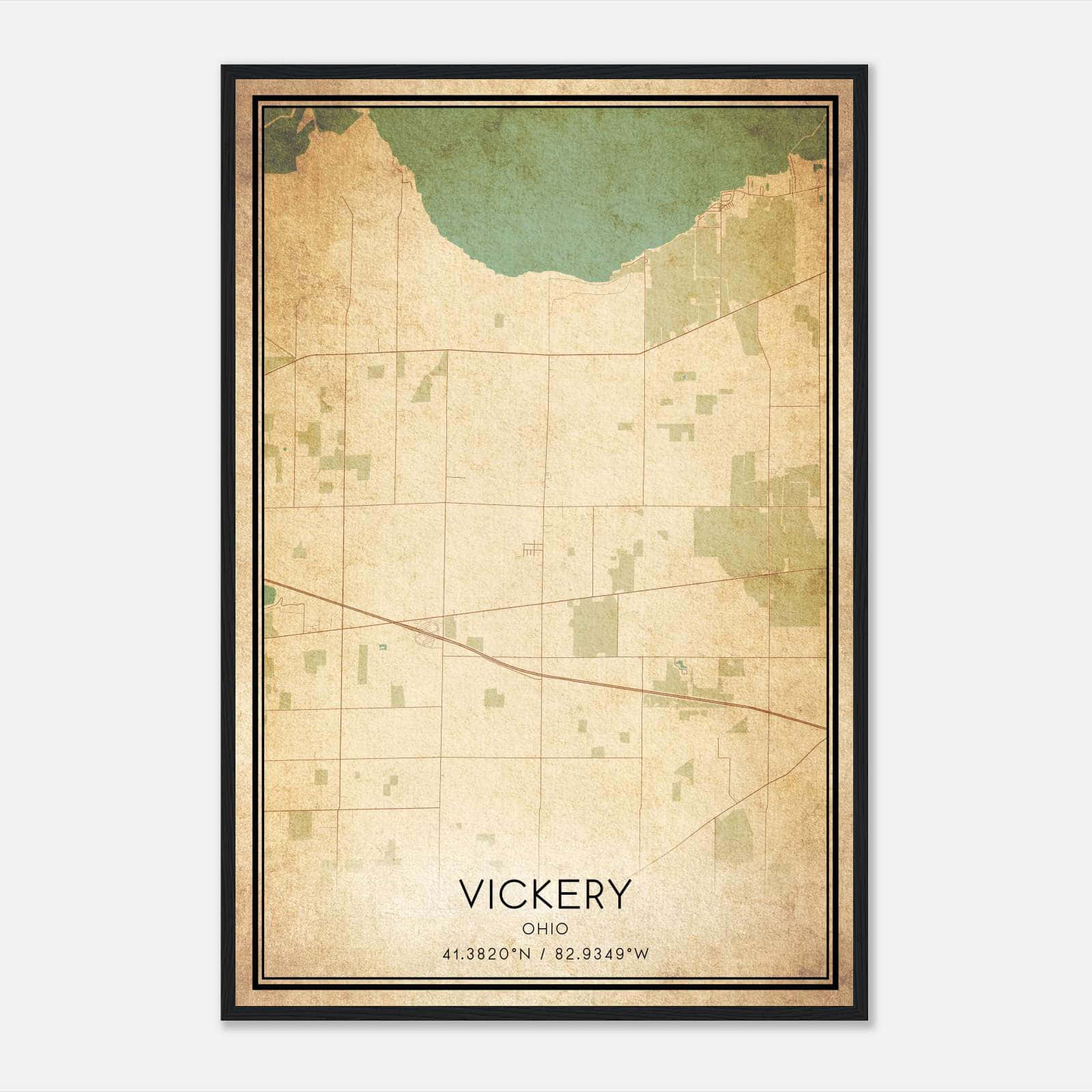 Vintage Vickery Ohio Map Poster, Vickery OH City Road Wall Art